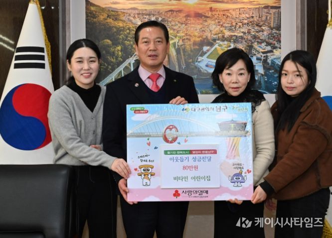 (케이시사타임즈) 대구 남구 국공립 비타민어린이집에서는 지난 1월 29일 남구청을 방문하여 이웃돕기 성금 80만원을 기탁했다.