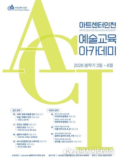 모든 프로그램은 봄학기 주 1회씩 10~12주간 진행되며, 수강 신청은 2월 4일 오전 10시부터 아트센터인천 홈페이지에서 가능하다. 자세한 일정과 수강료는 홈페이지에서 확인 가능하다.