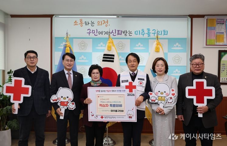 (케이시사타임즈) 인천광역시 미추홀구의회는 2월 4일 의회 의장실에서 전경애 의장과 장규철 부의장을 비롯한 상임위원장들과 조의영 대한적십자사 인천지사 회장 및 조혜정 적십자봉사회 미추홀지구협의회 회장과 관계 임원들이 참석한 가운데 2026년도 적십자 특별회비 전달식을 개최했다.