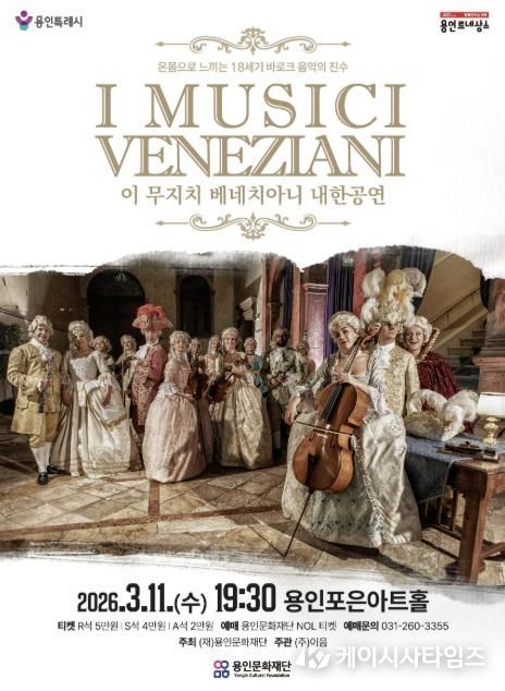 (케이시사타임즈) 용인문화재단은 오는 3월 11일 용인포은아트홀에서 세계적인 바로크 앙상블 ‘이 무지치 베네치아니(I Musici Veneziani)’의 내한 공연을 개최한다.