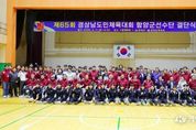 (케이시사타임즈) 함양군은 제65회 경상남도민체육대회 출전을 앞두고 4월 17일 오후 2시 함양군 고운체육관에서 선수단 결단식을 개최했다. 이날 행사에는 진병영 함양군수를 비롯해 김윤택 군의회 의장, 김재웅·이춘덕·한상현 도의원, 군의원, 윤외준 농협은행 함양군지부장, 이영일 대한노인회 함양군지회장, 이창구 천령문화제 위원장, 이연주 함양고등학교 교장, 이영재 함양신협 이사장, 김철규 함양군새마을금고 이사장, 관내 기관·사회 단체장, 안병명 함양군체육회장, 선수와 임원 등 200여 명이 참석해 함양군 선수단의 선전을 기원했다. 결단식은 경과보고, 출정사, 격려사, 선수단 대표 선서, 발전기금 전달, 단기 수여 순으로 진행됐다. 함양군은 이번 대회에 육상, 테니스, 야구, 농구, 탁구, 유도 등 20개 종목에 선수단 408명과 임원단 165명 등 총 573명의 선수단을 구성해 출전한다. 군 단위에서 처음으로 개최되는 제65회 경남도민체육대회는 4월 17일부터 20일까지 4일간 함안군과 창녕군 일원에서 열리며, 도내 18개 시군에서 총 2만여 명이 참가해 정식 32개, 시범 4개 등 총 36개 종목에서 열띤 경쟁