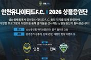 (케이시사타임즈) 인천관광공사는 인천유나이티드와 함께 ‘인천유나이티드F.C. X 2026 상플응원단’을 공동 개최한다고 밝혔다. 이번 행사는 원정경기 현장 방문이 어려운 시민과 축구 팬들이 도심 속에서 함께 경기를 관람하고 응원할 수 있도록 기획된 프로그램으로, 지역 내 새로운 스포츠 문화 콘텐츠로 자리매김할 것으로 기대된다. 행사는 인천 중구 상상플랫폼 웨이브홀에서 총 5회에 걸쳐 진행된다. 오는 4월 21일 전북현대와의 원정경기를 시작으로 ▲5월 5일 대전 하나시티즌전 ▲8월 2일 제주SK FC전 ▲8월 23일 광주FC전 ▲9월 12일 울산HD FC전 등 주요 원정경기 일정에 맞춰 운영될 예정이다. 행사 현장에서는 원정경기 생중계와 함께 다양한 시민 참여형 프로그램이 마련된다. 스코어 및 득점자 예측 이벤트를 비롯해 하프타임에는 응원가ㆍ선수 맞히기 등 관람객이 함께 즐길 수 있는 참여형 이벤트가 진행된다. 당첨자에게는 인천유나이티드 홈경기 예매권과 구단 MD 상품 등 다양한 경품이 제공되며, 현장에는 구단 MD 판매 부스도 함께 운영된다. 인천관광공사는 이번 프로그램을