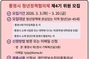 (케이시사타임즈) 통영시는 '통영시 청년 기본 조례' 제12조에 따라 청년 의견 수렴과 정책 모니터링을 위한 ‘통영시 청년정책협의체’ 제4기 위원 20명을 공개 모집한다고 4일 밝혔다. 청년정책협의체는 청년이 직접 정책 의제를 발굴·제안하고, 청년정책 추진 과정에 참여하는 정책 파트너 기구다. 이번 제4기 협의체는 공개모집 20명과 통영시청년센터가 주관하는 통영청년학교(가칭) 졸업자 10명 이내를 포함해 총 30명 내외로 구성될 예정이다. 모집 대상은 공고일 기준 18세 이상 45세 이하 청년으로 ▲통영시에 주민등록을 둔 자 ▲통영시 소재 사업장 또는 대학 재학(휴학생·대학원생 포함) ▲통영시 소재 청년단체 활동자 중 하나 이상을 충족하면 신청할 수 있다. 위원으로 위촉되면 2년간 활동하며, 청년정책 의제 발굴 및 제안, 정책 모니터링, 토론회·행사 참여 등 다양한 활동을 수행하게 된다. 분과는 일자리(취업·창업), 청년복지(주거·복지), 문화소통(문화·참여) 3개 분야로 운영된다. 모집 기간은 오는 20일까지이며, 통영시청 제1청사 기획예산실 인구청년정책팀 방문 또는 이메
