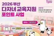 (케이시사타임즈) 부산시는 부산시교육청과 함께 학령기 자녀를 둔 다자녀 가정을 지원하기 위한 '부산 다자녀 교육지원포인트' 사업을 추진한다고 밝혔다. 다자녀 가정의 교육비 지출 부담 완화를 위해 시와 시교육청이 7대 3으로 재원을 분담해 운영하는 사업으로 2024년 시작해 올해로 3년째 추진된다. 지난해 12만 2천여 다자녀 가정에 총 414억 원을 지원했으며, 공공마이데이터 연계를 통해 신청·심사 절차를 간소화한 결과 절차 만족도가 2024년도 76.1%에서 91.6%로 크게 개선되는 등 이용 편의성과 정책 체감도가 높아진 것으로 나타났다. '부산 다자녀 교육지원포인트'는 소득·재산 기준과 관계없이 자녀 1명 이상이 2008∼2019년생(초·중·고 학령)에 해당하는 부산시 다자녀가정이면 누구나 지원받을 수 있다. 지원 규모는 2자녀 가정에 30만 원, 3자녀 이상 가정에 50만 원의 교육지원포인트가 지급된다. 다만, 부산 시민 혜택 제공을 위해 신청인 주민등록 기준 최소 3개월 이상 부산시에 거주해야 한다, 교육지원포인트는 부산 지역화폐 동백전의 정책지원금으로 지급되며,