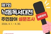 (케이시사타임즈) 부산 북구는 오는 4월 1일부터 30일까지 한 달간 2026년 제7회 낙동독서대전 개최를 위한 구민 의견수렴 설문조사를 실시한다고 밝혔다. 이번 설문조사는 구민이 직접 만들어가는 독서 문화 축제를 구현하기 위한 것으로, 행사 주제, 초청 작가, 희망 전시도서 등 ‘2026년 낙동독서대전의 핵심 프로그램’에 대한 구민의 선호를 조사한다. 선정된 의견은 본행사와 연중행사에 적극 반영할 계획이다. 독서대전 주제는 만덕도서관과 백양근린공원에서 열리는 행사 특성을 반영해 지역 정체성을 살린 참신한 문구를 제안하면 된다. 초청 작가는 본행사 북토크에서 만나보고 싶은 작가를, 희망전시도서는 타인과 공유하고 싶은 ‘나의 인생책’을 추천하면 된다. 이와 함께 책과 독서를 주제로 한 체험 프로그램이나 원데이 클래스도 제안할 수 있으며, 우수 의견은 검토를 거쳐 본행사 체험 프로그램에 반영할 예정이다. 설문은 북구청 홈페이지(소통/참여 ' 구민참여 ' 설문조사)를 통해 온라인으로 참여할 수 있으며, 덕천·만덕·화명·금곡도서관 로비에 마련된 설문조사 보드를 이용한 오프라인 참여도 가능하다. 오태원 북구