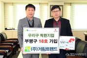 케이시사타임즈 관리자 기자 | 부평구는 20일 지역사회 나눔문화 확산에 앞장서 온 ㈜거림트렌드가 ‘우리구 착한기업 18호’로 가입했다고 밝혔다. 거림트렌드는 부평구 청천동에 소재한 섬유·의류 제조 기업으로 2017년부터 현재까지 부평구와 인연을 이어오고 있다. 매월 김치 5kg 12박스 정기 후원과 51만원의 성금을 꾸준히 기탁해 관내 저소득 취약계층 17명에게 3만원씩 정기적으로 지원하고 있다. 앞서 송명섭 거림트렌드 대표는 지역사회 나눔에 헌신해 온 공로를 인정받아 2025년 구민의 날 기념식에서 ‘구민상 특별상’을 수상한 바 있다. 구관계자는 “거림트렌드는 묵묵히 이웃을 돕는 기업”이라며 “나눔의 문화가 지역사회에 선한 영향을 미칠 수 있도록 부평구도 함께 노력하겠다”고 말했다. 착한기업 가입에 관한 자세한 사항은 구 복지정책과로 문의하면 된다. 한편, ‘우리구 착한기업’은 부평구와 인천사회복지공동모금회가 함께 추진하는 지역 나눔 실천 캠페인으로, 정기적으로 사회공헌 활동을 펼치는 기업을 착한기업으로 선정해 현판을 수여하는 제도이다.