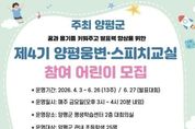 (케이시사타임즈) 양평군은 관내 초등학생의 논리적 사고와 발표 능력 향상을 위해 오는 4월 3일부터 ‘제4기 양평웅변·스피치교실’을 운영한다. 이번 프로그램은 어린이들이 대중 앞에서 자신의 생각을 논리적으로 표현하고 발표에 대한 자신감을 기를 수 있도록 마련된 교육 과정이다. 교육은 4월 3일부터 6월 26일까지 총 13주 과정으로 진행되며, 매주 금요일 오후 3시부터 4시 20분까지 양평군 평생학습센터 2층 대회의실에서 열린다. 6월 27일에는 그동안 배운 내용을 발표하는 발표대회도 평생학습센터 4층 온누리실에서 진행될 예정이다. 양평웅변·스피치교실은 관내 웅변·스피치 분야의 강사인 백현진 강사의 재능기부로 운영되며, 관내 초등학생이면 누구나 참여할 수 있다. ‘제4기 양평웅변·스피치교실’ 참여 접수 기간은 3월 16일 오전 9시부터 3월 20일 오후 6시까지이며, 희망자는 홍보문에 있는 정보 무늬(QR 코드)를 통해 온라인으로 신청할 수 있다.