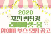 (케이시사타임즈) 포천시농업재단은 오는 5월 한탄강 생태경관단지에서 열리는 ‘2026년 포천 한탄강 리버마켓-봄’ 행사에 참여할 부스 운영자를 공개 모집한다. 이번 리버마켓은 2026년 5월 2일부터 6월 7일까지 37일간 한탄강 생태경관단지 일원에서 개최된다. ‘한탄강 가든페스타’와 연계해 포천 농특산물 홍보와 판매, 다양한 먹거리와 체험 프로그램이 함께 운영될 예정이다. 모집 규모는 총 45개 부스로 △포천 농특산물 판매대 20개 △먹거리 판매대 17개 △푸드트럭 8대다. 농특산물 판매대는 포천시 농업인 및 농식품 기업을 대상으로 모집하며, 먹거리 판매대와 푸드트럭은 식품 영업 허가가 가능한 개인 또는 단체가 참여할 수 있다. 행사 기간에는 농특산물 판매와 함께 △산나물 페스티벌 △시니어 패션쇼 △봄 반려견 관광축제 △홀스타인 품평회 등 다양한 연계 행사가 진행돼 방문객들에게 풍성한 볼거리와 즐길거리를 제공할 예정이다. 참여 신청은 3월 18일 오후 5시까지 전자메일 또는 방문 접수를 통해 가능하며, 선정 결과는 3월 26일 포천시농업재단 누리집을 통해 발표할 예정이다. 포천시농업재