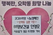 (케이시사타임즈) 여주시 점동면에 소재한 ㈜성건은 지난 5일 오학동행정복지센터를 방문하여 지역 내 어려운 이웃을 위한 성금 50만 원을 기탁했다. ㈜성건은 토공사업, 포장공사업, 상·하수도 설비공사업, 석면 해체·제거업 등을 영위하는 지역 기업으로, 지난해에 이어 올해도 이웃돕기 성금을 기탁하며 지역사회 나눔문화 확산에 앞장서고 있다. 김성현 대표는 “작은 정성이지만 어려운 이웃들에게 조금이나마 도움이 되길 바라는 마음으로 성금을 기탁하게 됐다”며 “앞으로도 지역사회와 함께하는 기업으로서 지속적인 나눔을 실천하겠다”고 말했다. 이에 김병선 오학동장은 “지난해에 이어 올해도 따뜻한 나눔을 실천해 주신 김성현 대표님께 감사드린다”며 “기탁해 주신 성금은 도움이 필요한 관내 취약계층을 위해 소중히 사용하겠다”고 전했다. 한편, 이날 기탁된 성금은 오학동 지역 내 어려운 이웃을 위한 복지사업에 사용될 예정이다.