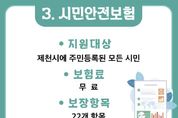 (케이시사타임즈) 제천시는 예기치 못한 사고와 재난으로 피해를 입은 시민들의 생활 안정과 일상 회복을 지원하기 위한 시민안전보험을 전년도와 동일한 조건으로 올해도 갱신해 운영한다고 밝혔다. 시민안전보험은 제천시에 주민등록을 둔 모든 시민은 별도의 가입 절차 없이 자동으로 가입되며, 전국 어디에서 발생한 사고라도 보장을 받을 수 있고 타 보험과 중복 보상도 가능하다. 보장 기간은 2026년 2월 1일부터 2027년 1월 31일까지이며, 전년도와 같이 22개 항목에 대해 최대 2,500만 원까지 보장한다. 주요 보장 항목으로는 자연재해 사망, 폭발·화재·붕괴 사고, 대중교통 이용 중 사고 등이 포함된다. 보험금은 사고 발생일로부터 3년 이내에 청구할 수 있으며, 한국지방재정공제회 시민안전보험 전담 조직(1577-5939)에 직접 보험금을 신청하면 심사를 거쳐 지급된다. 시 관계자는“예기치 못한 사고로 어려움을 겪는 시민들에게 실질적인 도움이 될 수 있도록 시민안전보험 제도를 지속적으로 운용하겠다”라며 “ 보험 제도를 몰라서 혜택을 받지 못하는 사례가 없도록 적극적으로 홍보하겠다”라고 밝혔다.