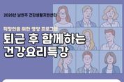 (케이시사타임즈) 남원주건강생활지원센터는 직장인을 위한 영양 프로그램 ‘퇴근 후 함께하는 건강요리특강’ 참여자를 모집한다. 이번 프로그램은 대사증후군 예방·관리와 구강 청결 교육, 건강 요리 실습으로 구성되며, 오는 4월 30일 오후 6시 30분부터 8시까지 진행된다. 모집 대상은 지역 주민 10명 이내며, 신청은 4월 17일 오전 9시부터 센터 전화를 통해 선착순으로 접수한다. 자세한 사항은 남원주건강생활지원센터로 문의하면 된다.