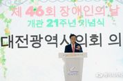 (케이시사타임즈) 대전시의회 조원휘 의장은 9일 제46회 장애인의 날 및 유성구장애인종합복지관 21주년 기념식에 참석해 장애에 대한 편견을 허물고 지역 공동체의 결속을 다지는 계기를 마련했다. 이날 행사에는 장애인 가족과 자원봉사자, 후원기관 관계자 등 800여 명이 참석했으며, 식전공연을 시작으로 유공자 시상, 경품추첨, 기념품 증정까지 다채로운 프로그램으로 꾸며졌다. 조원휘 의장은 축사를 통해 "표창을 받으신 분들의 미소에서 대전의 희망을 보았다"며 "대전시민 100명 중 5명, 유성구에만 만 이천여 명의 구민이 장애와 함께 살아가고 계신다"고 말했다. 이어 "장애는 약 88%가 후천적 원인인 만큼, 장애인 복지는 특정 누군가의 문제가 아닌 우리 모두의 내일을 준비하는 일"이라고 강조했다. 또한 "여러분이 행복해야 대전이 행복하다"며 "시의회는 누구도 소외되지 않는 '평등한 대전'을 위해 든든한 동행자가 되겠다"고 밝혔다.