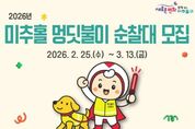 (케이시사타임즈) 미추홀구종합자원봉사센터는 3월 13일까지 ‘2026년 미추홀구 멍딧불이 순찰대’로 활동할 반려 가족을 모집한다고 밝혔다. 반려견 순찰대는 반려견과 함께 산책하며 지역 내 위험 요소를 발견하고 관계 기관에 신고하는 등 생활 속 안전 지킴이로, 올바른 반려문화 확산과 지역 안전망을 구축할 계획이다. 이번 모집을 통해 총 30가정(60명 이내)을 선발하며, 미추홀구에 거주하고 정기적인 순찰 활동이 가능한 반려견 가족이면 신청할 수 있다. 선발된 반려견과 반려인은 발대식 이후 정식 순찰대로 활동하게 되며, 주 1회 이상 순찰을 진행하고, 연 1회 반려견 문화축제 ‘미추홀 댕댕 페스타’를 통해 반려인 간의 교류를 활성화하고, 성숙한 반려문화를 조성해 나갈 계획이다. 센터 관계자는 “멍딧불이 순찰대는 반려견과 함께하는 일상 속 산책이 곧 지역을 지키는 자원봉사 활동으로 이어지는 의미 있는 사업”이라며 “많은 반려 가족이 참여해 안전하고 따뜻한 미추홀구를 함께 만들어가길 바란다.”고 전했다. 자세한 사항은 미추홀구종합자원봉사센터 홈페이지에서 확인할 수 있다.