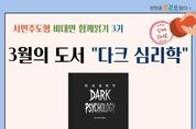 (케이시사타임즈) 인천광역시교육청서구도서관은 2026년 시민주도형 비대면 함께읽기 3기 프로그램 ‘다크심리학 함께 읽기’ 참여자를 모집한다. 이번 프로그램은 시민 선정 도서인 ‘다크심리학’을 함께 읽으며 인간 본성의 어두운 면과 숨겨진 심리를 탐구하고 자신을 보호하는 방법을 다루는 과정으로, 3월 9일부터 27일까지 운영한다. 참여 신청은 서구도서관 누리집에서 20일 오전 10시부터 진행되며, 자세한 사항은 도서관 누리집을 확인하거나 종합자료실로 문의하면 된다.