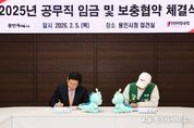 (케이시사타임즈) 용인특례시는 5일 시청 접견실에서 시 소속 공무직 근로자를 대표하는 전국민주연합노동조합 용인지부와 ‘2025년 공무직 임금·보충 협약’을 체결했다고 밝혔다. 이날 체결식에는 이상일 시장과 최승덕 전국민주연합노동조합 용인지부장을 비롯한 노사 교섭위원 10여 명이 참석했다. 이번 협약에는 ▲직종별 기본급 3.2~3.7% 차등 인상 ▲국내 문화체험 제도 신설 ▲질병·육아휴직 복직자의 휴가권 확대 ▲생일 휴가 신설 등 근로 여건과 복지 수준을 개선하는 사항이 포함됐다. 노사 양측은 지난해 4월 24일 제1차 본교섭을 시작으로 본교섭 13회, 실무교섭 7회 등 총 20차례에 걸친 협의를 통해 올해 1월 잠정 합의안을 도출했다. 노조는 지난달 28일 조합원 찬반투표를 거쳐 협약을 최종 확정했다. 이번 협약에 따른 임금 인상분은 2025년 근무분에 대해 소급 적용된다. 이상일 시장은 “시의 어려운 사정을 헤아려 주고 협상을 잘 마무리해 주신 데 대해 감사드린다”며 “앞으로 시의 재정 여건이 점차 나아지게 될텐데, 여러분이 하고 있는 일들을 더 적극적으로 응원하고 지원하겠다”고 말했