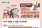 (케이시사타임즈) 대전시는 4월 7일부터 5월 26일까지 2027년도 주민참여예산 편성을 위한 시민제안 공모를 시작한다. 참여 대상은 대전시민, 대전 소재 직장인, 비영리민간단체 회원, 학생 등이며, 시민이 직접 사업을 제안해 시정에 참여할 수 있다. 총사업 규모는 작년과 동일한 50억 원이며, 대도시 문제 해결 사업 또는 2개 이상 구에 걸친 시민편익 사업을 대상으로 한다. 제안 분야는 경제, 일자리, 공동체, 청년, 여성, 복지, 문화관광, 체육, 환경, 교통, 주택, 도시재생, 안전 및 행정 등이다. 신청 방법은 대전시 주민참여예산 누리집(홈페이지), 이메일, 팩스, 우편, 방문 접수 등을 통해 가능하다. 접수된 제안 사업은 부서 검토 및 심사, 시민투표와 시민총회를 거쳐 최종 선정되며, 선정된 사업은 의회 승인을 받은 뒤 2027년 예산에 반영될 예정이다. 한치흠 대전시 기획조정실장은 “주민참여예산은 시민이 직접 필요한 사업을 제안하고 예산 편성 과정에 참여하는 제도”라며 “시민 여러분의 많은 관심과 적극적인 참여를 바란다”라고 말했다.