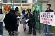 (케이시사타임즈) 부산 동래구는 학교 밖 청소년들의 학력 취득을 격려하고 새로운 시작을 응원하기 위해 ‘2026년도 고등 검정고시 합격 축하금 지원 사업’을 본격 추진한다고 밝혔다. 동래구는 이번 사업의 인지도를 높이고 정보 부족으로 혜택을 놓치는 청소년이 없도록 지난 4일 제1회 검정고시 시험장인 부곡여자중학교를 직접 찾아 현장 밀착형 홍보 활동을 전개했다. ‘고등 검정고시 합격 축하금’은 학업을 중단한 학교 밖 청소년들이 검정고시 합격을 통해 자신감을 회복하고 건강한 사회 구성원으로 성장할 수 있도록 돕는 동래구의 맞춤형 복지 제도다. 이날 현장 홍보에는 동래구와 학교밖청소년지원센터 직원 등이 참여했다. 이들은 이른 아침부터 시험장을 찾은 응시생과 학부모들에게 축하금 지원 제도를 안내하고, 따뜻한 응원의 메시지를 전달하며 현장 소통을 강화했다. 동래구는 이번 현장 홍보를 통해 제도 사각지대에 놓인 학교 밖 청소년들을 선제적으로 발굴하고, 실질적인 수혜율을 높일 수 있을 것으로 기대하고 있다. 동래구 관계자는 “힘든 여건 속에서도 미래를 향해 도전하는 청소년들의 노력이