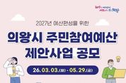 (케이시사타임즈) 의왕시가 시민이 예산 편성 과정에 직접 참여하여 지역에 필요한 사업을 제안하는 ‘2026년 주민참여예산제’운영에 본격 나선다. 이번 주민참여예산의 총규모는 약 50억 원으로, 시 일반회계 예산의 1% 범위 내에서 편성된다. 특히 올해 공모에서는 ‘청년·청소년 대상 사업’과 ‘안전사고 예방 관련 사업’을 신규 우선 지원 대상으로 선정할 예정으로, 온라인 플랫폼 ‘주민이(e)참여’를 활용해 시민들의 사업 기획 및 제안 접근성을 대폭 높였다. 사업 제안은 3월 3일부터 5월 29일까지 받으며, 의왕시민은 물론 관내 직장인과 학생 누구나 참여할 수 있다. 공모 분야는 시 전체를 대상으로 하는 ‘시 정책사업’과 동 단위 불편 사항을 해소하기 위한 ‘지역현안사업’으로 나뉜다. 신청은 ‘주민이(e)참여’또는 시 홈페이지를 통해 온라인으로 하거나, 의왕시청(시청로 11) 기획예산과 및 각 동 주민센터의 방문·우편으로 가능하다. 김성제 시장은 “주민참여예산제는 우리 동네의 변화를 시민이 직접 만들 수 있는 소중한 기회”라며,“청년과 안전 분야를 비롯해 시민 들의 참신하고 실효성 있는 아이디어가 시