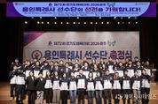 (케이시사타임즈) 용인특례시는 30일 시청 에이스홀에서 ‘제72회 경기도체육대회 2026 광주’에 참가하는 선수단 출정식을 개최했다. 제72회 경기도체육대회는 4월 16일부터 18일까지 3일간 광주시 일원에서 열리며, 용인특례시는 육상, 축구, 태권도 등 26개 종목에 선수 312명이 출전한다. 출정식에는 이상일 시장을 비롯해 체육회 임원과 종목단체장, 선수단 등 약 300명이 참석했다. 이상일 시장은 격려사를 통해 “그동안 대회를 위해 열심히 준비해 온 선수단 여러분들 정말 자랑스럽다”며 “이번 대회에서 갈고닦은 실력을 마음껏 발휘해 원하는 성과 거두시길 바라고, 모두가 한 단계 더 성장하는 계기가 되길 바란다”고 말했다. 이 시장은 “선수들이 더 좋은 환경에서 훈련하고 기량을 펼칠 수 있도록 지원을 확대하기 위해 노력하고 있다”며 “앞으로도 여러분과 함께 힘과 지혜를 모아 오늘보다 더 나은 내일을 만들어가겠다”고 했다. 이 시장은 출정식 이후 집무실에서 직장운동경기부 감독과 종목단체 회장단을 대상으로 간담회를 열어 선수단을 격려하고, 현장의 애로사항과 건의사항을 청취했다.