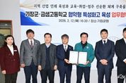 (케이시사타임즈) 기장군은 최근 금샘고등학교(교장 오상흔)와 ‘협약형 특성화고등학교 육성을 위한 업무협약’을 체결했다고 19일 밝혔다. 이번 협약은 전력반도체 협약형 특성화고등학교 선정을 위해 준비 중인 금샘고등학교를 지원하고, 기장군의 미래 먹거리인 전력반도체 특화단지에 필요한 맞춤형 인재를 양성하기 위해 협력 체계를 구축하고자 마련됐다. 이날 협약식에는 정종복 기장군수와 오상흔 금샘고등학교 교장을 비롯해 금샘고등학교 학부모회, 기장군 소재 기업인 ㈜효성전기와 ㈜SCV 관계자 등이 참석했다. 기장군과 금샘고등학교는 상호 신뢰를 바탕으로 2026년 3월부터 5년간 지역 기반 산업 인재 육성을 위해 실질적인 협력을 추진하기로 뜻을 모았다. 주요 협약 내용은 ▲지역 기반 산업 인재 육성을 위한 지자체-학교 간 거버넌스 구축 ▲교육 비전 달성을 위한 행정적 지원 및 대외 홍보 ▲특성화 프로그램 운영을 위한 행정·재정적 지원 검토 등이다. 정종복 기장군수는 “금샘고등학교 재학생 중 기장군 거주 학생 비율이 약 22%에 달할 만큼 우리 군과 밀접한 관계가 있다”라며, “우리 지역의 아이들이 타