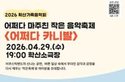 (케이시사타임즈) 인천 미추홀구 학산 생활 문화센터 학산소극장에서 오는 4월 29일 저녁 7시 ‘2026년 학산 가족 음악회’의 첫 번째 공연을 개최한다. ‘학산 가족 음악회’는 공모를 통해 선정된 다양한 공연을 선보이며, 시민들이 일상에서 부담 없이 공연 문화를 즐길 수 있도록 마련된 프로그램이다. 특히 가까운 공간에서 편안하게 관람할 수 있어 가족 단위 관객을 비롯해 누구나 함께할 수 있는 것이 특징이다. 올해 첫 무대는 어쿠스틱 밴드 ‘신나는 섬’의 공연 ‘어쩌다 마주친 작은 음악 축제 '어쩌다 카니발'’로 꾸며진다. ‘신나는 섬’은 바이올린, 아코디언, 집시 기타, 우쿨렐레, 하모니카, 더블베이스, 퍼커션 등 다양한 어쿠스틱 악기를 기반으로 활동하며, 경쾌하면서도 따뜻한 사운드로 관객과 호흡해 온 팀이다. 특히 ‘망원동 로마니’, ‘아침부터 카니발이야’ 등 밴드 고유의 색깔이 담긴 곡들과 함께 ‘리멤버 미’, ‘에델바이스’ 등 대중에게 친숙한 곡들을 연주해, 마치 유럽의 어느 골목에서 우연히 마주친 거리 축제와 같은 이국적이고 동화적인 감동을 선사할 계획이다. 미추