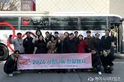 (케이시사타임즈) (재)부산문화회관(대표이사 차재근)은 2월 12일(목) 오전 9시 30분부터 부산문화회관 다듬채 앞에서 노사 합동으로 '2026 사랑나눔 헌혈행사'를 진행했다. 이번 행사는 “노사가 함께하는 작은 실천, 생명을 살리는 큰 나눔”이라는 취지 아래, 안정적인 혈액 수급에 기여하고 생명 나눔 문화 확산에 동참하기 위해 마련됐다. 임직원들은 자발적으로 헌혈에 참여하며 지역사회 공익 실천의 의미를 더했다. 특히 (재)부산문화회관의 노사 합동 헌혈행사는 2020년부터 시작해 이번 행사를 포함하여 총 8회 진행됐으며, 노사가 함께 실천하는 지속적인 사회공헌 활동으로 자리매김하고 있다. (재)부산문화회관은 앞으로도 노사가 함께하는 상생·협력 문화를 바탕으로, 시민과 함께하는 사회공헌 활동을 지속적으로 추진해 나갈 계획이다.