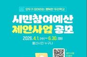 (케이시사타임즈) 울산광역시교육청은 시민들의 참신한 생각을 내년도 예산에 반영할 ‘시민 참여 예산 제안 사업 생각(아이디어)’를 오는 6월 말까지 공모한다. 시민 참여 예산 제안 사업은 시민이 직접 학교 현장과 울산교육 전반에 필요한 사업을 제안하는 제도이다. 울산교육에 관심 있는 시민과 학생, 학부모, 교직원 등 울산 시민이면 누구나 참여할 수 있다. 공모 분야는 ‘교육예산사업 정책 생각(아이디어)’로 학교 현장과 울산교육 전반에 적용할 수 있는 사업 가운데, 실현 가능성과 파급효과가 큰 사업을 대상으로 한다. 교육재정의 효율성을 높이고 현장 체감도가 높은 사업 발굴에 중점을 둔다. 제안서 제출은 4월 1일부터 6월 30일까지 울산교육청 누리집 ‘교육재정한눈에-시민참여예산’ 에서 온라인으로 접수할 수 있다. 우편 ․ 방문 또는 팩스 신청도 가능하다. 접수된 제안 사업은 담당 부서 검토를 거쳐 시민참여예산위원회에서 타당성 검토와 심의를 진행한다. 이후 시의회 심의를 거쳐 최종 선정된 사업은 내년도 예산에 반영돼 시행된다. 울산교육청은 우