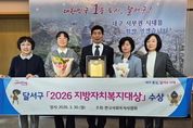 (케이시사타임즈) 대구 달서구가 한국사회복지사협회가 주관하는‘2026 지방자치복지대상’에서 기초자치단체 부문 대상을 수상하며 복지 선도도시로서의 위상을 다시 한번 입증했다. 이번 시상은 지난 30일 서울 국회박물관에서 열린‘제20회 사회복지사의 날’ 기념식에서 진행됐으며, 사회복지사 처우개선과 지역복지 발전에 기여한 지방자치단체의 정책 성과를 종합적으로 평가해 수여됐다. 달서구는 사회복지 종사자 처우개선을 위한 조례를 선제적으로 제정하고, 세 차례의 실태조사를 실시하는 등 데이터 기반 정책을 추진해 온 점에서 높은 평가를 받았다. 또한 2026년 전체 예산 1조 1,958억 원 중 73.3%에 해당하는 8,678억 원을 사회복지 분야에 편성하며 복지 사각지대 해소와 종사자 지원에 지속적으로 투자해 왔다. 이와 함께 보건복지부 인건비 가이드라인 준수, 상해보험료 및 보수교육비 지원, 장기근속 휴가제 도입 등 근무환경 개선 정책을 추진해 현장 만족도를 높였다. 아울러 통합돌봄 전담부서 신설, 노인종합복지관 확충, 주거복지센터 및 아이꿈센터 운영 등 조직과 인프라를 확대해 서비스의 전문성과
