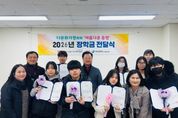 (케이시사타임즈) 부산진구 다문화가정 자녀의 건강한 성장을 위해, 지난 10일 설 명절을 맞이하여 ‘아름다운 동행’제4회 장학금 전달식이 개최됐다. 전달식은 부산진구다문화가족지원센터, 위탁법인 (사)부산여성의전화(하경해 대표)가 ㈜탑서비스(노학양 대표)의 후원을 받아 개최했으며, 관내 다문화가정 자녀 7명에게 장학증서와 장학금을 수여했다. 노학양 대표는 “오늘 이 자리를 통해 여러분의 미래를 응원할 수 있어서 기쁘고, 꿈과 재능을 키워 글로벌 인재로 성장하는 데 보탬이 되길 바란다.”라고 당부했다. 한윤정 센터장은 “장학생 여러분의 희망찬 성장을 응원하는 자리에 함께할 수 있어서 뜻깊고, 앞으로도 소중한 꿈과 희망을 펼쳐나갈 수 있도록 노력하겠습니다.”라고 전했다. 부산진구다문화가족지원센터는 부산진구 내 거주 중인 다문화 가족의 안정적인 생활 지원과 사회·경제적 자립, 그리고 자녀들의 건강한 성장을 도모하는 데 앞장서고 있다.