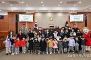 (케이시사타임즈) 울산 중구의회가 설 명절을 앞두고 관내 어린이집 원생과 학부모, 교직원을 초청, 견학 행사를 마련했다. 중구의회는 11일 중구 병영 도담어린이집 원생과 학부모, 보육교사 등 50여명이 참가한 가운데 중구의회 의정활동 체험행사를 진행했다. 이날 행사에는 박경흠 의장과 김도운 의원이 참석해 의회 홍보영상 시청, 기초의회의 역할과 기능 강의, 의회시설 견학, 본회의장 체험활동, 기념품 전달 등이 펼쳐졌다. 특히 중구를 상징하는 대표 캐릭터인 ‘울산큰애기’가 함께 동행해 어린이집 원생들과 기념촬영을 하며 뜻깊은 시간을 가졌다. 이번 체험활동에는 원생은 물론 학부모도 함께 동행해 평소 생소하게만 느껴졌던 기초의회를 직접 보고, 느껴보는 기회를 마련했다. 중구의회는 지역 어린이집과 초·중·고 학생을 대상으로 지방의회의 기능과 역할을 알리고 풀뿌리민주주의의 중요성을 몸소 체험할 수 있는 기회를 제공하는 견학·체험 교실을 운영중이며 지방자치 교육과 모의의회 등의 프로그램으로 구성돼 있다. 박경흠 의장은 “자라나는 아이들이 본회의장에서 정책과 행정집행의 상징과도 같은 의사