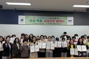 (케이시사타임즈) 대전 서구는 27일 대전과학기술대학교 진리관에서 해당 학교 간호학과 측과 ‘반가워U 건강짝꿍 맺기’ 사업 추진을 위한 ‘건강짝꿍 서포터즈’ 발대식을 개최했다. 이번 발대식은 장기 입원 후 퇴원한 의료급여 수급자가 가정에서도 안정적인 생활을 유지할 수 있도록 지원하기 위해 마련됐다. 이날 자리에서는 해당 대학 간호학과 학생 22명이 ‘건강짝꿍 서포터즈’로 위촉됐다. 학생 2인 1조씩 총 10개 팀으로 구성된 서포터즈는 한 달에 두 번 재가의료급여 대상자 가정을 방문한다. 건강 체조, 보드게임, 상담 및 산책, 건강일지 작성 등 소통 활동을 통해 대상자의 인지기능 향상을 돕는다. 이 밖에도 전공 지식과 실무 역량을 바탕으로 지역사회 건강 문제와 관련된 다양한 활동을 펼칠 예정으로, 활동 기간은 올해 11월까지다. 안명옥 서구 주민복지국장은 “학생들에게 이번 활동이 인성과 실무 역량을 함께 함양하는 계기가 되길 바란다”며 “앞으로도 대학과의 협력을 강화해 맞춤형 의료급여 사업을 확대해 나가겠다”고 말했다.