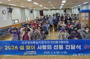(케이시사타임즈) 민주평화통일자문회의 부산중구협의회(협의회장 김현진)는 지난 6일, 중구노인복지관(관장 김보수)에 사랑의 선물 기금 100만 원을 전달했다. 이번 성금은 설명절을 맞아 지역 내 독거 및 저소득 어르신 30세대를 대상으로 설맞이 물품을 지원하는 데 사용될 예정이다. 김보수 중구노인복지관 관장은 “매년 따뜻한 나눔을 실천해주시는 민주평화통일자문회의 부산중구협의회에 깊이 감사드린다”며 “앞으로도 어르신들과 기쁨을 나누며 지역사회에 온기를 전하는 복지관이 되도록 노력하겠다”고 전했다.