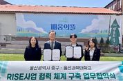 (케이시사타임즈) 울산 중구와 울산과학대학교 RISE사업단이 4월 15일 오후 2시 중구평생학습관 배움의 뜰 강의실에서 ‘RISE사업 평생교육 협력체계 구축’ 업무협약을 체결했다. 이번 협약은 지역 수요에 기반한 평생교육을 활성화하고 다양한 협력 모형(모델)을 발굴해 공동으로 추진하기 위해 마련됐다. ‘RISE(지역혁신중심 대학지원체계) 사업’은 지자체의 지원과 대학의 우수한 인적·물적 자원을 연계해, 지역과 대학이 함께 공동의 위기를 극복하고 상생 발전을 도모하는 협력 사업이다. 이번 협약을 바탕으로 중구와 울산과학대학교 RISE사업단은 △성인 학습자 개방형 전문대학 연계 운영 △중구형 평생교육 협력 모형(모델) 구축 등에 나설 예정이다. 중구는 지역 내 평생교육 연결망(네트워크)과 행정 업무 등을 지원할 방침이다. 울산과학대학교는 대학의 교육 역량과 전문 기반 시설(인프라)을 바탕으로 지역 맞춤형 학습-고용 선순환 체계를 구축하고, 성인 학습 전문 과정 및 RISE 문화체험 프로그램 등을 운영할 계획이다. 중구 관계자는 “지역 대학교와 협력해 주민들에게 더욱 수준 높은