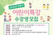 (케이시사타임즈) 영천시 평생학습관(관장 정경자)은 관내 초등학생을 대상으로 ‘2026년 상반기 어린이특강’ 수강생을 20일부터 선착순으로 모집한다. 이번 특강은 아이들이 체험활동을 통해 자연스럽게 배우고 성장할 수 있도록, 신체 활동부터 예술·탐구 활동까지 총 11개의 다양한 프로그램으로 마련됐다. 오는 5월 2일부터 6월 27일까지 2개월간 운영되며, 수강 신청은 평생학습관 누리집에서 가능하다. 수강료는 주 1회 과목 1만원, 주 2회 과목 2만원으로 재료비는 별도다. 평생학습관 관계자는 “아이들이 특강을 통해 다양한 경험을 해보며 세상에 대한 호기심과 자신감을 키워나가길 바란다”며, “앞으로도 아이들의 눈높이에 맞는 다양한 프로그램을 지속적으로 마련해 나가겠다”고 전했다. 한편, 어린이특강에 대한 자세한 사항은 영천시 평생학습관 누리집을 참고하거나, 평생학습관 교육운영팀으로 문의하면 안내받을 수 있다.
