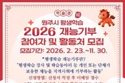 (케이시사타임즈) 원주시 평생교육원 학습관은 오는 11월 말까지 2026년 원주시 평생학습 재능기부 참여자 및 활동처를 수시 모집한다. 재능기부 참여자는 평생교육 강사, 학습동아리 등 자신의 재능을 무보수로 나눠주고 싶은 개인 또는 팀이다. 재능기부 활동처는 프로그램 참여를 희망하는 관내 경로당과 요양원, 복지관 등 관람 인원이 15명 이상인 곳이다. 학습관은 오는 4월부터 11월까지 매달 희망 활동처 2곳과 재능기부 팀 1∼3곳을 연계해 프로그램을 운영할 계획이다. 모집 기간은 2월 23일부터 11월 30일까지다. 학습관 또는 원주시 통합예약플랫폼 홈페이지에서 서식을 내려받아 작성한 후, 이메일 제출하면 신청할 수 있다. 자세한 사항은 학습관 평생교육팀으로 문의하면 된다. 윤석재 학습관장은 “평생학습으로 배운 재능을 지역의 소외계층과 함께 나눔으로써 재능기부 문화를 활성화할 수 있도록 많은 관심과 참여를 부탁드린다”라고 말했다.