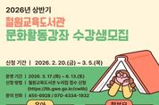 (케이시사타임즈) 철원교육도서관 2026년 초등 독서논술동아리를 3월 14일부터 11월 14일까지 운영하며, 이를 위해 2월 19일부터 동아리 회원을 모집한다. 모집 동아리는 △돋을별(초등학교 1~3학년 대상) △은가람(초등학교 4~6학년 대상)으로 총 2개 동아리이다. 초등 독서논술동아리 회원 모집은 2월 19일부터 철원교육도서관 누리집을 통해 가능하다. 동아리별로 대상이 다르므로 유의하여 신청하여야 한다. 정원 미달이 발생할 경우 동아리 회원은 상시 모집한다. 김민서 관장은 "독서동아리 활동을 통해 어린이들이 책 읽는 습관을 익히고, 토의 활동을 통해 의사소통 능력과 사고력을 키울 수 있기를 바란다"라고 말했다. 기타 자세한 사항은 철원교육도서관 누리집 공지사항 또는 동아리 담당자 에게 문의하면 된다.