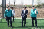 (케이시사타임즈) 김포 최초의 한강변 조망 축구장인 고촌 신곡축구장이 오는 6월 개장을 목표로 하고 있는 가운데, 김포시가 14일 조성현장을 방문해 사업 추진현황을 점검했다. 시는 진입로 공사 등 추진상황을 점검하고 안전하고 조속한 개장에 박차를 가할 예정이다. 김병수 시장을 비롯해 교육문화국장, 도시주택국장 등이 함께 한 이날 현장 행정에서는 축구장 조성 현황을 확인하고 진입로 설치공사 현장을 직접 점검했다. 고촌 신곡축구장 조성사업은 총사업비 약 23억 원을 투입해 인조잔디 축구장 1면과 휴게시설, 야간조명을 조성하는 사업으로, 시민들이 시간 제약 없이 체육활동을 즐길 수 있는 환경을 마련해 생활체육 활성화 및 체육 인프라 확충을 도모하고 있다. 이날 김병수 시장은 “시민들이 공공체육시설을 안전하고 편리하게 이용할 수 있도록 공정 및 현장관리에 만전을 기하겠다”고 말했다. 김포시는 앞으로도 시민 생활과 밀접한 주요 사업 현장을 지속적으로 점검하고, 현장 중심의 행정을 통해 시민 체감도를 높여나갈 계획이다.