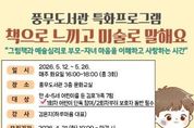 (케이시사타임즈) 김포시 풍무도서관은 가정의 달을 맞아 만 4~5세 어린이를 둔 김포가족을 대상으로 ‘책으로 느끼고 미술로 말해요’를 오는 5월 12일부터 5월 26일까지 매주 화요일 오후 4시부터 6시까지 총 3회에 걸쳐 운영한다. 프로그램은 그림책예술심리 전문기관인 하루마음 김은지 대표가 진행한다. 참여자들은 차수별 주제도서를 함께 읽은 후 다양한 미술활동을 통해 가족 간 정서적 교감을 나누는 시간을 가질 예정이다. 해당 프로그램의 취지에 따라 1회차는 어린이 단독 참여로 운영되며, 2회차부터는 보호자 동반 참여가 필수다. 4월 21일 오전 10시부터 풍무도서관 홈페이지를 통해 신청할 수 있으며, 만 4~5세 어린이를 둔 김포가족 7팀을 선착순으로 모집한다.