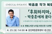 (케이시사타임즈) 홍천군립도서관이 오는 4월 25일 오후 2시 홍천복합문화센터 1층 강당에서 배우 겸 작가 박중훈을 초청해 2026년 ‘체크인 라이브러리’의 첫 번째 북토크를 개최한다. ‘체크인 라이브러리’는 도서관에 ‘체크인(Check In)’하여 평소 관심 있던 작가를 만나(Check 人) 한 사람의 책(책 人)이 들려주는 이야기와 생각을 공유하는 홍천군의 대표적인 독서 문화 진흥 플랫폼이다. 이번 북 토크는 '후회 하지마 – 박중훈에게 묻다'라는 주제로 진행된다. 스무 살에 데뷔해 40년간 40여 편의 영화에 출연하며 ‘국민배우’로 폭넓은 사랑을 받아온 박중훈은 이번 북 토크에서 배우로서의 삶과 영화 이야기, 그리고 2025년 작가로 변신하며 출간한 에세이 '후회 하지마'에 담긴 진솔한 메시지를 전할 예정이다. 박중훈 작가가 직접 참여자들의 질문에 답하며 소통하는 시간도 마련되어 있어 더욱 눈길을 끈다. ‘박중훈 작가 북 토크’ 사전 참여 신청은 4월 8일 오전 10시부터 연봉도서관 누리집(홈페이지)에서 할 수 있으며 선착순 120명까지 접수할 수 있다. 이성희 교육체육과장은 “지