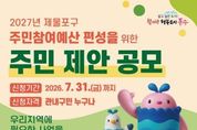 (케이시사타임즈) 인천 동구는‘2027년 주민참여예산’제안 사업 공모를 오는 7월까지 진행한다고 밝혔다. 이번 공모는 총 5억원 이내로 운영되며 제안 가능한 사업 분야는 ▲주민편익 향상 ▲지역 현안·불편 해소 ▲안전사고 예방 등이다. 동구에 거주하는 주민이라면 누구나 신청할 수 있으나 단순 진정·불만 사항이나 계속사업, 국·시비 보조사업, 특혜성 사업 등은 제외된다. 사업제안을 희망하는 주민은 동구청 홈페이지 소통과참여,‘사업제안신청’메뉴에서 신청하거나 방문·우편(인천광역시 동구 금곡로 67, 총무과 자치행정팀)으로 신청하면 된다. 김찬진 동구청장은“주민참여예산제도는 주민이 직접 구정에 참여할 수 있는 의미 있는 제도”라며“주민 여러분의 많은 관심과 적극적인 참여를 부탁드린다”고 말했다.