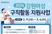 (케이시사타임즈) 속초시와 속초여성새로일하기센터가 속초시에 거주하는 40세 이상 59세 이하 미취업 여성을 대상으로 ‘2026년 강원여성 구직활동 지원사업’ 참여자를 모집한다. 강원여성 구직활동 지원사업은 취업을 준비하는 여성에게 구직활동에 필요한 비용을 지원해 경제활동 재진입을 돕는 사업이다. 신규 참여자에게는 최대 300만 원, 재참여자에게는 최대 150만 원의 구직활동지원금을 지원한다. 지원 기간 중 취·창업에 성공해 3개월 이상 근속하면 50만 원의 취·창업 성공금도 지급한다. 신청 기간은 2월 11일부터 3월 4일까지다. 지원 대상은 모집 시작일인 2월 11일 기준 속초시에 거주하는 40세 이상 59세 이하(1966년 2월 12일~1986년 2월 11일) 미취업 여성으로, 기준 중위소득 60% 초과 150% 이하 가구의 구성원이다. 신청은 강원일자리정보망을 통한 온라인 접수로 진행된다. 자세한 사항은 속초시 또는 속초여성새로일하기센터로 문의하면 안내받을 수 있다.