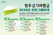 (케이시사타임즈) 트레킹 도시 원주시는 3월부터 11월까지 ‘2026년 원주걷기여행길 프로그램’을 운영한다. 이번 프로그램은 원주의 역사·문화·생태 자원을 직접 보고, 느끼고, 체험하는 활동을 통해 걷기 운동을 확산하고 시민 건강 증진에 기여하는 것을 목표로 한다. 원주시는 지난해 연인원 50만 명 이상이 찾은 치악산둘레길, 원주굽이길, 원주소풍길 등 우수한 걷기길 인프라를 바탕으로 연간 40여 개의 다양한 걷기 행사와 프로그램을 운영해 시민들로부터 큰 호응을 얻었다. 올해에도 맨발걷기, 함께걷기, 역사길걷기, 야간걷기 등 다채로운 걷기 프로그램과 함께 걷기 강연 및 교육을 운영해 시민들이 일상 속에서 걷기의 즐거움과 건강을 함께 누릴 수 있도록 할 예정이다. 매월 첫째 주 토요일에는 소풍길 1코스 운곡솔바람숲길에서 ‘원주힐링 맨발걷기’ 행사가 열린다. 총 3㎞ 전 구간이 소나무 숲으로 조성된 이곳은 피톤치드가 가득한 힐링 공간으로, 지난해에만 11만 명이 찾은 ‘맨발걷기의 성지’로 알려져 있다. 원주시는 지난해 6월과 9월 원주맨발걷기축제를 성공적으로 개최하며 맨발걷기 문화 확산에 앞장섰다. 아울