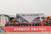 (케이시사타임즈) 강원특별자치도는 3월 30일 오전 11시 춘천시 동내면 고은리 일원에서 ‘강원특별자치도 신청사 착공식’을 개최했다. 착공식에는 김진태 도지사를 비롯해, 한기호 국회의원(춘천‧철원‧화천‧양구을), 김시성 도의장, 신영재 홍천군수, 이병선 속초시장, 이상호 태백시장, 양양부군수, 지역 주민대표 등 1천여 명이 참석했다. 신청사 건립사업은 약 5,000억 원 사업비가 투입되며, 도민 중심의 복합행정문화공간으로 조성된다. 신청사는 약 10만㎡ 부지에 지하 2층, 지상 9층 규모로 건립되며, 다목적 강당과 전면 광장, 옥상정원 등을 갖춰 도민이 언제나 찾아와 소통하고 이용할 수 있는 열린 공간으로 조성된다. 특히 기존 청사의 주요 불편사항으로 지적됐던 주차난 해소를 위해 1,600대 이상 수용 가능한 주차공간을 확보하는 등 도민 편의 증진과 행정 효율성 제고를 동시에 고려한 스마트 청사로 건립된다. 도는 이번 부지 조성 및 진입도로 등 기반시설 공사를 시작으로 올해 하반기 본격적인 건축공사에 착수해 2029년 준공을 목표로 사업을 추진할 계획이다. 김진태 지사는