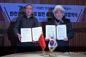 (케이시사타임즈) 앞으로도 화천산천어축제에서 빙설 예술 최고봉으로 손꼽히는 하얼빈 빙등작품과 눈조형물을 만날 수 있게 됐다. 최문순 화천군수는 지난 7일, 중국 하얼빈을 방문해 화천군과 빙설문화발전 유한공사의 탄징신 예술감독과 양 기관 협력 강화를 내용으로 하는 협약서에 서명했다. 협약에 따라 양 기관은 얼음조각, 빙등, 눈조각 콘텐츠 분야에서 지속적 교류와 협력을 이어가기로 했다. 구체적으로 하얼빈 주재 빙설문화발전 유한공사 측은 내년 화천산천어축제에서도 실내얼음조각광장과 축제장 대형 눈조각 제작에 협력키로 했다. 또 얼음조각과 눈조각 분야 기술진과 연출가 등 전문가 상호 파견도 진행키로 했다. 나아가 빙설 콘텐츠를 활용한 국내,외 홍보 및 마케팅을 진행하고, 국제 관광 박람회 등에서도 공동 홍보에 나서기로 했다. 화천군은 지난 2007년 12월, 화천읍내 실내 주차시설에서 국내 처음으로 하얼빈 빙등 기술진들이 빚어낸 빙등작품을 도입한 바 있다. 2012년 12월부터는 화천읍 서화산 다목적 광장에서 산천어축제를 전후해 실내얼음조각광장을 운영 중이다.
