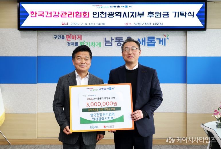 (케이시사타임즈) 인천시 남동구는 한국건강관리협회 인천광역시지부(본부장 이상철)로부터 어려운 이웃을 위한 후원금 300만 원을 기탁받았다고 6일 전했다.