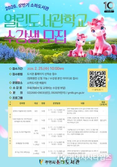 (케이시사타임즈) 광명시 소하도서관이 ‘2026년 상반기 열린도서관학교’ 수강생을 모집한다.