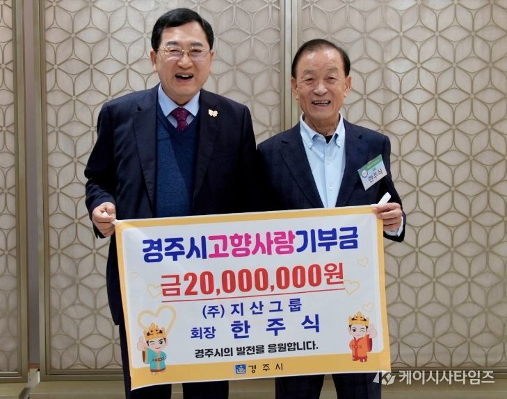 (케이시사타임즈) 경주시는 한주식 지산그룹 회장이 고향사랑기부 최고한도액인 2,000만 원을 기부하며 올해 경주시 고향사랑기부 고액기부자 1호에 이름을 올렸다고 9일 밝혔다.