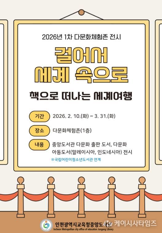 (케이시사타임즈) 인천광역시교육청중앙도서관은 2월 10일부터 3월 31일까지 1층 다문화체험존에서 ‘책으로 떠나는 세계여행’ 전시를 개최한다.