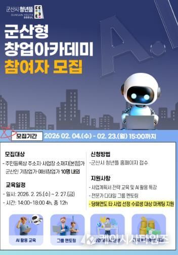 (케이시사타임즈) 군산시 청년뜰 창업센터가 23일까지 ‘2026년 군산형 창업아카데미’ 참여자를 모집한다.