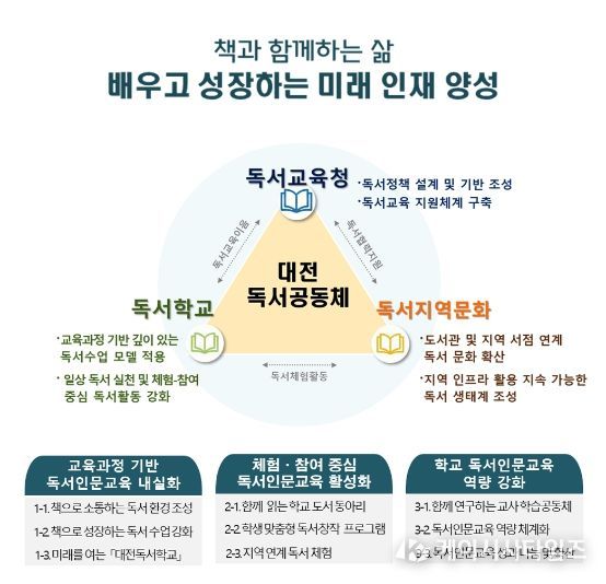 대전시교육청은 이번 계획을 통해 ‘대전독서교육청’으로서의 정체성을 확립하겠다는 포부다. ‘읽는 학교’를 넘어 ‘생각하는 교실’로, ‘개인의 독서’를 넘어 ‘사회적 독서’로 나아가기 위해 ‘대전독서학교’ 시스템을 가동하고 학교와 가정, 지역사회가 연결된 독서 생태계를 조성하는 데 교육청의 역량을 집중할 방침이다.